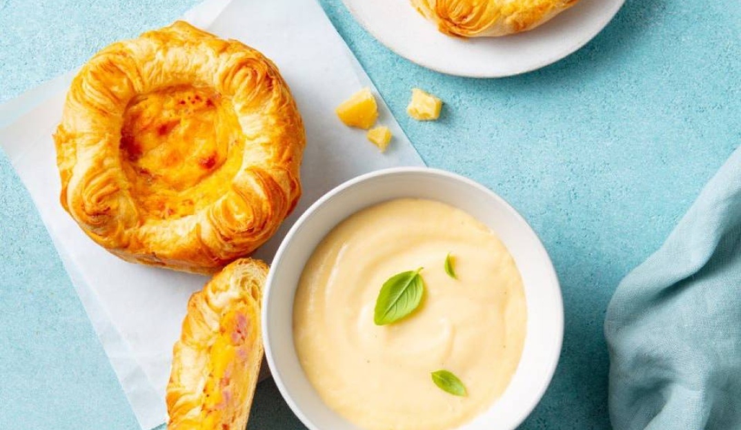 ГУРМЭ СЫРНАЯ придает сочность, выраженный сырный вкус, связанность и стабильность готовой начинке. Ее можно добавлять в мясной фарш, сыр, ветчину картофель, разводить для супов и соусов. Идеальна для начинок для пирогов, пирожков, сдобы, слоек, открытых лепешек, гастрономических маффинов и вафель.