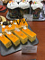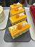 Нарезное пирожное «Янтарное» на основе апельсинового бисквита с морковью и имбирем, облепихового суфле и прослойки абрикосового конфитюра.
