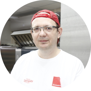 На смеси «Чиабатта Бакальдрин Рус» технолог приготовил еще одно трендовое изделие – римскую пиццу. Ее отличие от привычной нам пиццы – крупнопористая, хрустящая лепешка. Интересно, что такую лепешку можно испечь на 80%, заморозить, а когда понадобиться – дефростировать, разложить на нее начинку и доготовить. Так она станет еще более хрустящей!Для томатной основы технолог использовал порошок для приготовления томатное пюре «Буониссима». Это отличная находка для профессиональной кухни. В составе продукта – базилик, орегано, розмарин, измельченные сухие томаты. Ее нужно всего лишь развести водой до нужной консистенции, что удобно. Кроме того, «Буониссима» экономична. Ведь вам не нужно срабатывать сразу всю пачку открытого продукта, достаточно развести столько смеси, сколько потребуется. «Буониссима» идеальна в качестве фонда для пиццы, также ее можно добавлять в хлеб и выпечку для придания характерного томатного вкуса и аромата.
