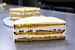 На этой смеси наш технолог приготовила несколько видов изделий. В торте морковно-апельсиновый бисквит удачно сочетается с суфле, приготовленном на «Смеси для суфле» Эстеро. В качестве прослойки использована яблочная начинка от компании «Пампушкин».