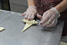 После четвертого слоения раскатать тесто до толщины 3 - 4 мм под окончательную разделку. Переложить тесто на рабочую поверхность. Для того, чтобы тесто не сжималось при нарезке, нужно дать тесту отлежку в течение нескольких минут, предотвращая заветривание.